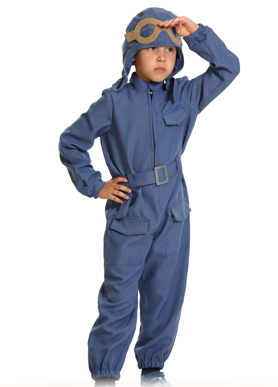 Детский костюм летчика станет отличным нарядом для утренников и театральных постановок в честь 9 Мая, 23 февраля и других тематических праздников. Костюм включает в себя комбинезон, головной убор и ремень.