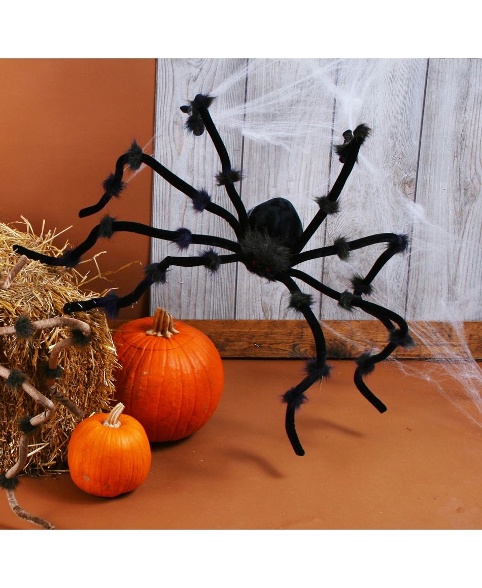 Чёрный плюшевый паук в размерах достигает примерно 120 см. Этот паук с огромными мохнатыми лапами может стать хорошим аксессуаром на Хэллоуин.