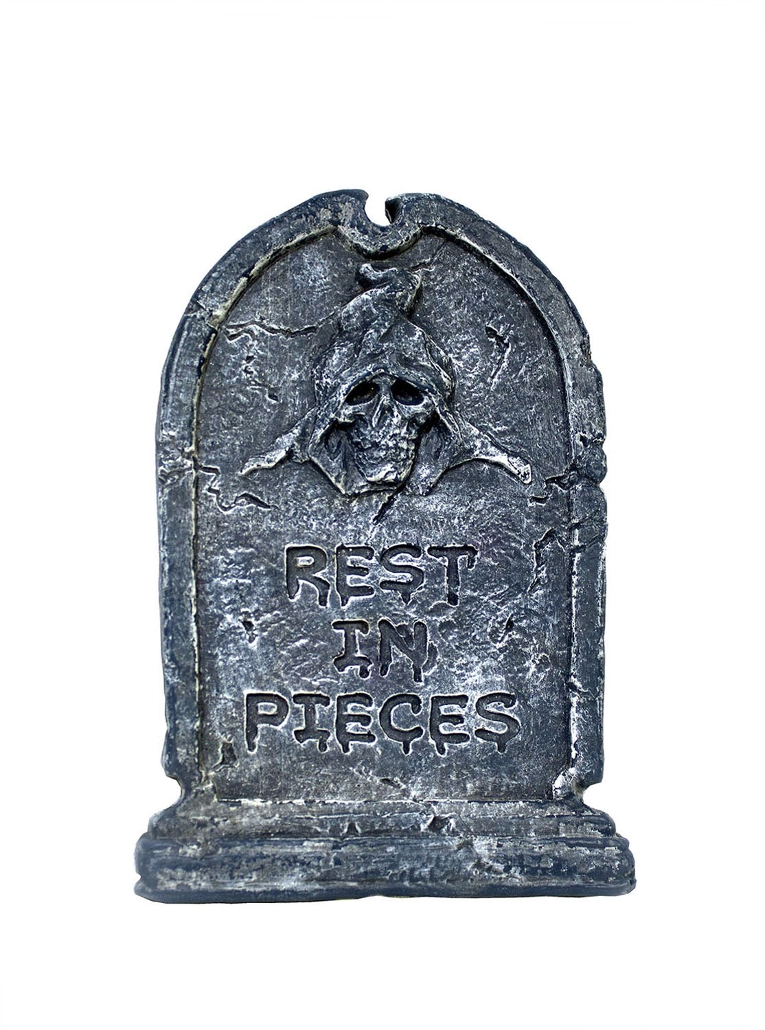 Надгробие Rest in Peace - небольшая пластиковая декорация, выполнена в виде надгробной плиты серого цвета. Декорацию дополняет изображение черепа и надпись Rest in Peace.