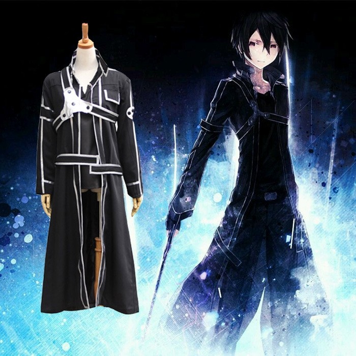 Костюм Кирито из Мастер меча онлайн представляет собой черное одеяние одного из героев аниме "Мастер меча онлайн". В комплект входит длинный плащ черного цвета с серебряной отделкой, нагрудный ремень с застежкой также к плащу прилагается пояс, а также черная кофта с длинным рукавом и черные простые штаны.