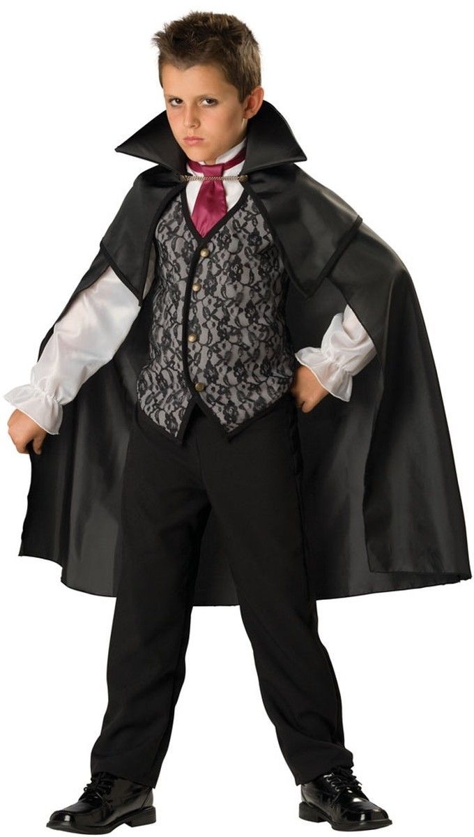 Строгий, но элегантный наряд для "любителей" крови. В наличии есть модель для взрослых с идентичным названием: "Костюм кровожадного вампира". В детский костюм кровожадного вампира входят: плащ, жилет с рукавами рубашки, галстук.