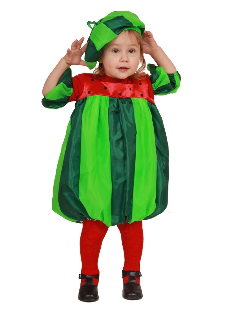 Карнавальный костюм Арбуз для любителей сочных ягод и жаркого лета! Костюм состоит из полосатых комбинезона и шапочки. Также у нас Вы можете найти для него целую фруктовую семью.