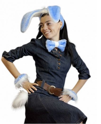 Набор Зайки - меховой набор, выполненный в бело-голубом цвете. В набор входят меховые ушки, галстук-бабочка, меховые нарукавники и белый маленький хвостик.