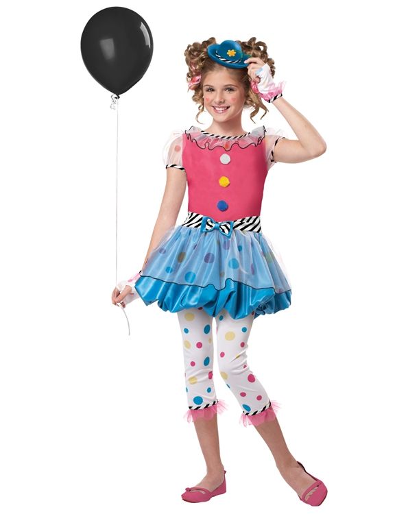 Костюм куколки-клоуна - это разноцветный наряд, который включает в себя розово-голубое платье, перчатки без пальцев, леггинсы в горох и мини-шляпку голубого цвета. Такой костюм подойдёт озорным, весёлым девчонкам.