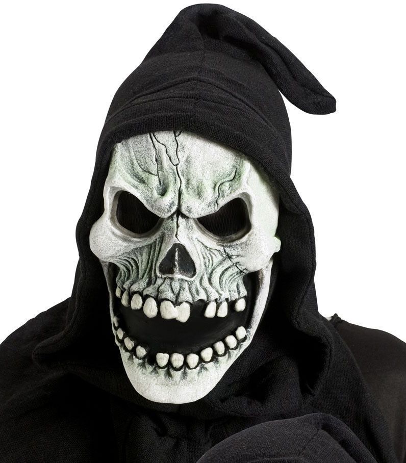 Серая маска Черепа в чёрном капюшоне и с открытым ртом - прекрасное дополнение к костюмам скелетов и Смертей. Эту маску вы можете надеть на Хэллоуин и другие подобные праздники и вечеринки.(Оружие, обувь и прочие аксессуары для дополнения образа вы также найдете в нашем каталоге).Рекомендации по уходу: Только чистка по месту загрязнения.