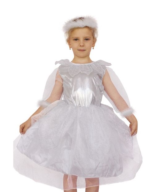 Детский костюм легкой Снежинки включает в себя белоснежное платье с подъюбником и полупрозрачной верхней юбкой, фигурным воротником и полупрозрачными рукавами с меховыми манжетами, также имеется меховой мягкий головной убор. В этом костюме ваша девочка будет как легкая пушистая Снежинка.