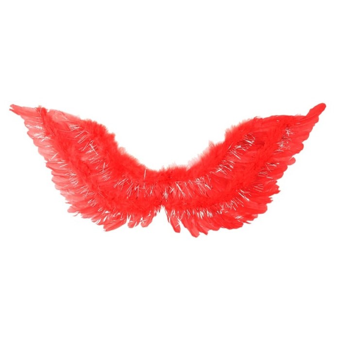 Красные крылья ангела с мишурой добавят Вашему образу праздничное настроение и блеск.
