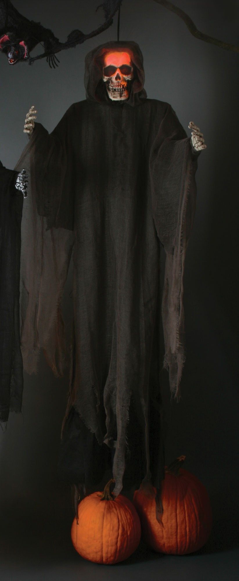 Светящаяся Смерть в сером плаще - это подвесная фигура старинного скелета, который одет в серый плащ. У скелета расставлены руки в разные стороны. Из под капюшона исходит яркий красный свет.
