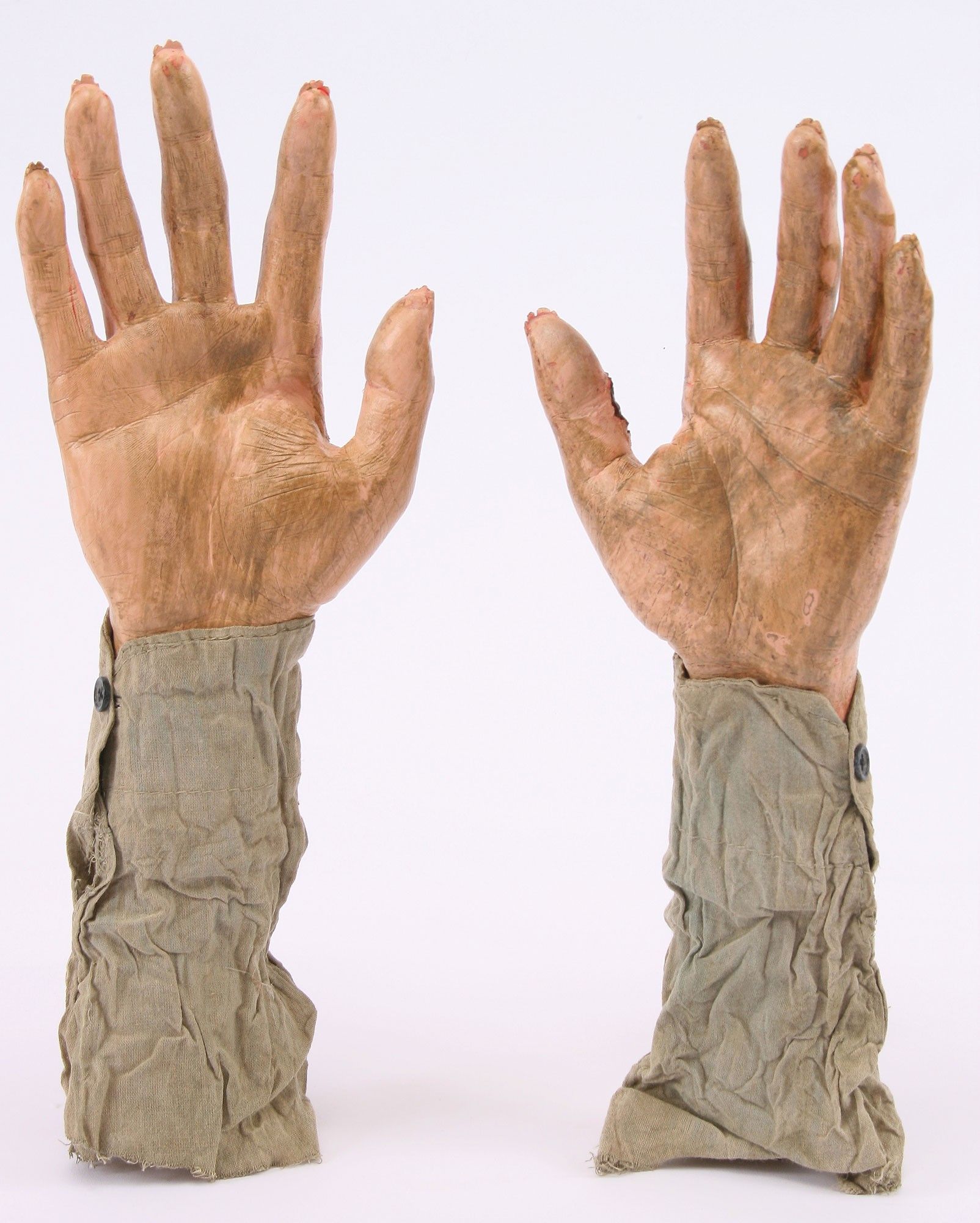 Окровавленные кисти рук - это отличный элемент декора, благодаря штырю на конце удобно втыкаются в землю, создавая образ лезущего из земли монстра. На тыльной стороне ладони и пальцах кровавые рваные раны.