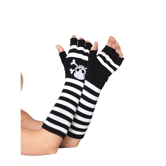 Панковские перчатки с черепом черно-белые. (Чулки, туфли, сапоги, грим, парик, головные уборы и прочие аксессуары для дополнения образа вы также найдете в нашем каталоге).