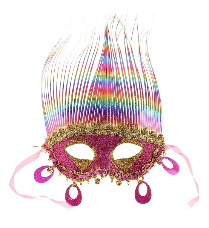 Карнавальная маска фиолетового цвета с разноцветными волосами, торчащими вверх, придаст вашему костюму оригинальность. Размер маски 20х36 см. Также на нашем сайте вы можете приобрести различные аксессуары к маскарадной вечеринке.