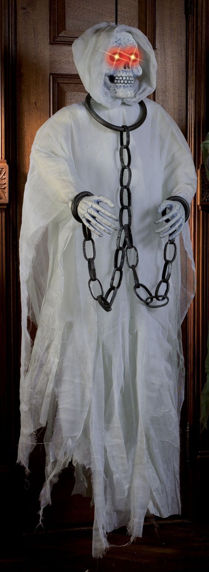 Подвесная фигура белой смерти Try Me! станет самой жуткой декорацией на вашей вечеринке! Белый скелет, одетый в белый рваный плащ с капюшоном приведет в ужас любого! На шее и костлявых руках у скелета одеты круглые кандалы, соединенные между собой цепью. У этой фигуры светящиеся глаза.