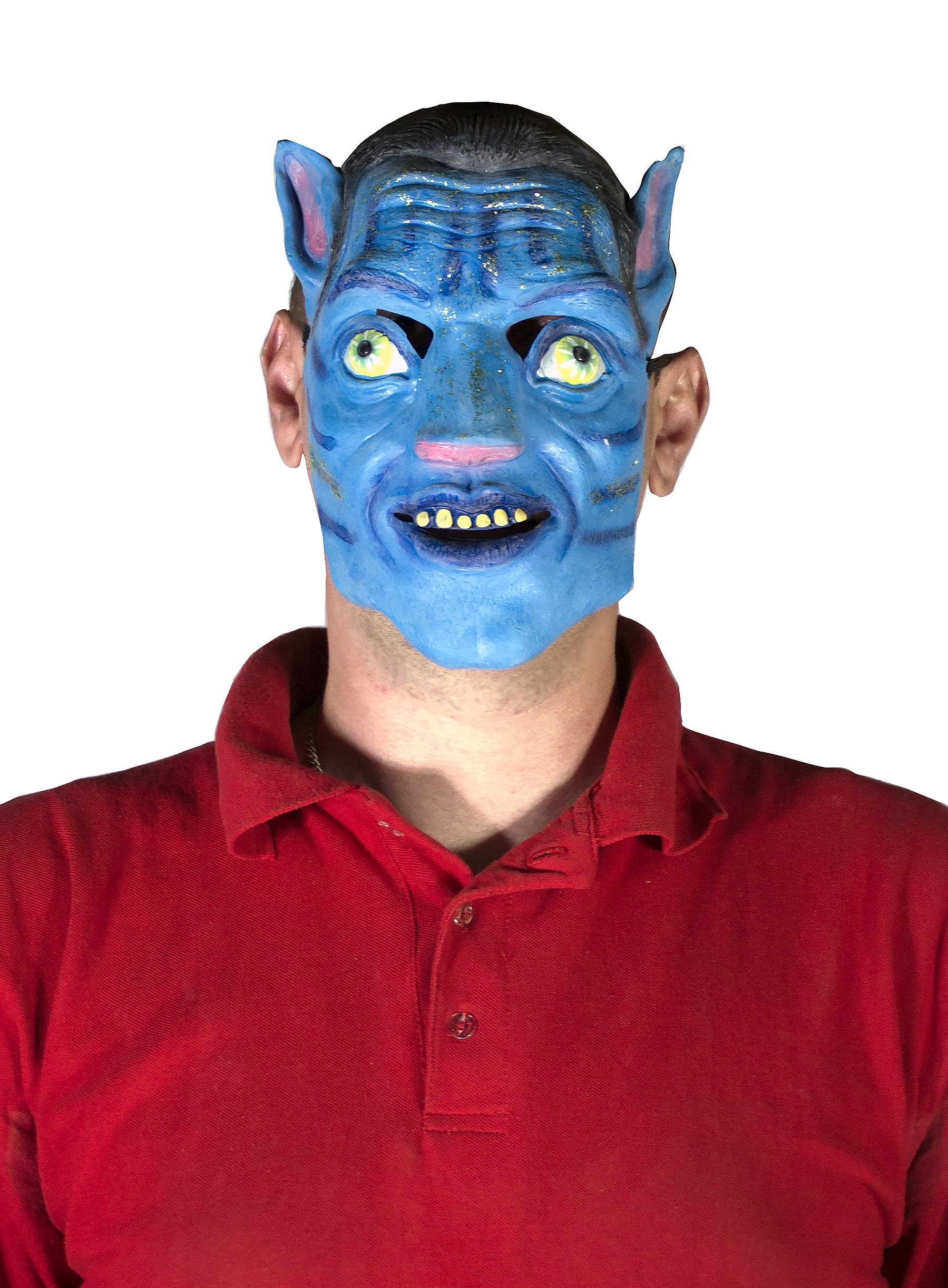 Маска Аватар выполнена из латексного материала. Маска представляет собой голубую мордочку Аватара с ушками. В маске имеются удобные прорези для глаз.