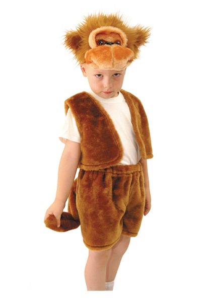 Детский костюм озорной Обезьянки выполнен в коричневом цвете из мягкого материала. В комплект костюма входят шортики с хвостиком, жилет и головной убор в виде мордочки весёлой и пушистой обезьянки. Такой костюм подойдёт для весёлых мальчишек. В нём можно пойти на любой детский утренник.