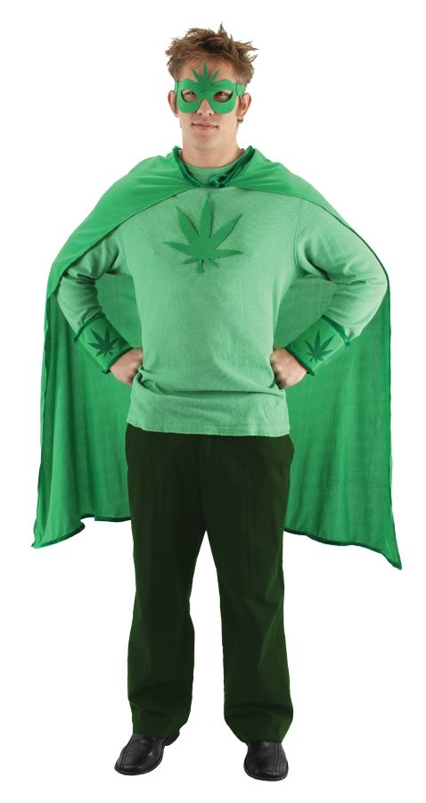Везде нужны свои герои и в конопляном деле тоже! Костюм конопляного парня включает в себя плащ с конопляным листиком, манжеты и зелёная маска, как и полагается супер-героям. Костюм выполнен в зелёном цвете.