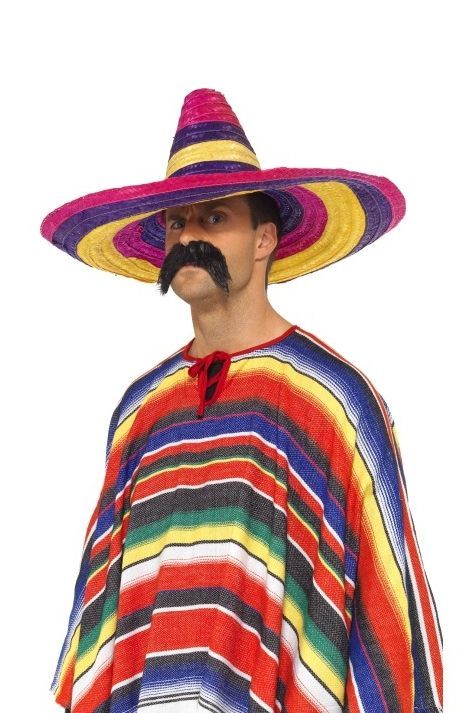 Большое Сомбреро - разноцветная широкополая шляпа с высокой конусообразной тульёй и обычно с закруглёнными вверх краями полей. Часть мексиканского национального костюма.(Прочие аксессуары для дополнения образа вы также найдете в нашем каталоге).Рекомендации по уходу: Только чистка по месту загрязнения.