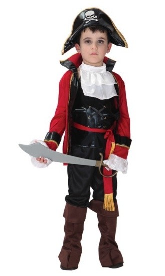 Детский костюм беспощадного пирата - роскошный костюм настоящего пиратского короля. Костюм включает в себя рубашку, брюки, накладки на ботинки, шляпу, пояс и жакет.