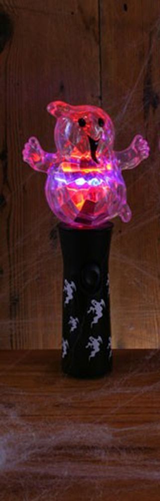 Фонарик с привидением подойдет для клубных вечеринок, а также для Хэллоуина и Пятницы 13. Рукоятка фонарика выполнена в черном цвете, на которой изображены белые привидения. Лампочка заключается в фигурку доброго веселого приведения. Кнопка вкл/выкл находится на рукоятке.