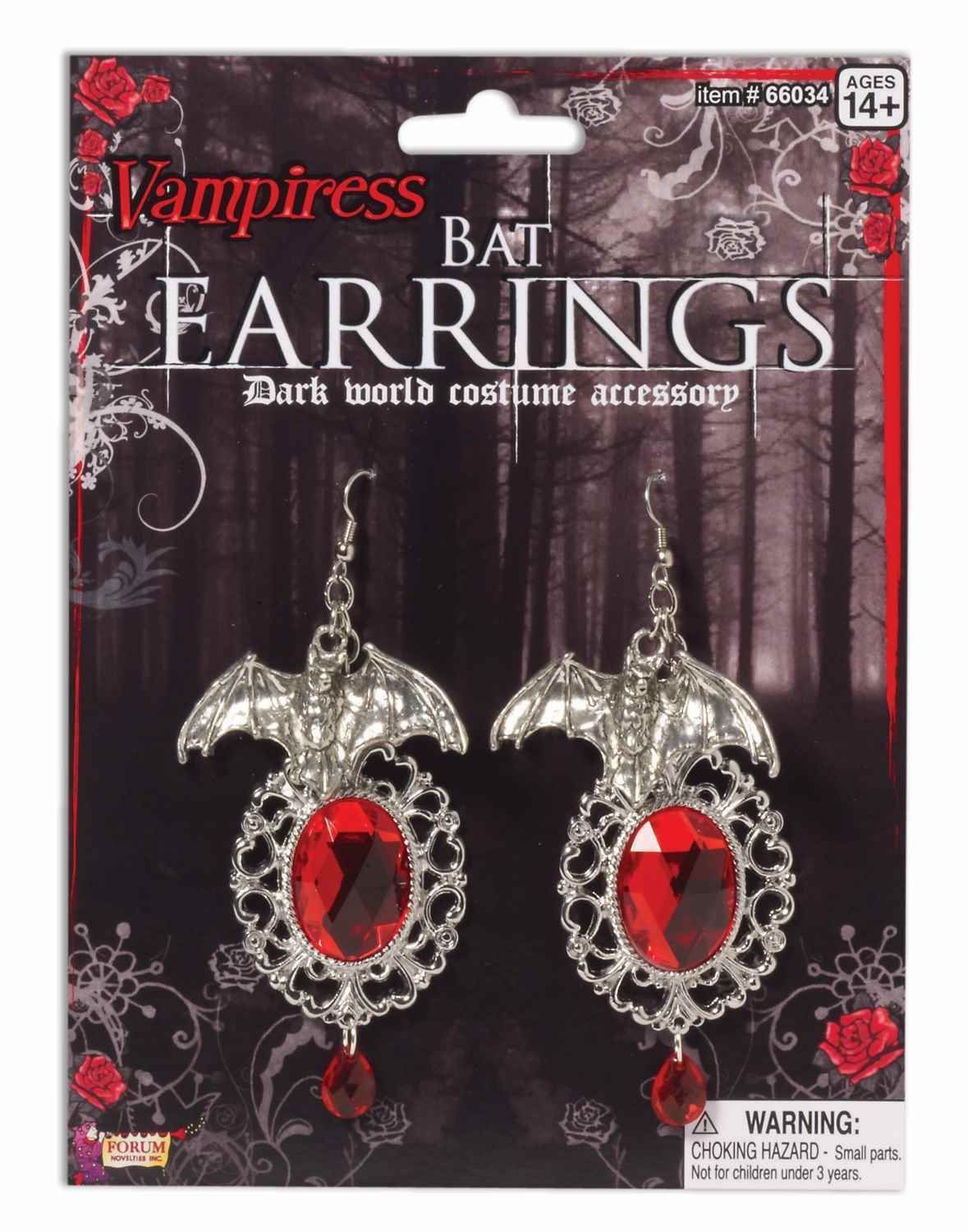 Вампирские серьги Летучие мыши - это длинные серебряные серьги, украшенные красными камнями и небольшими летучими мышками.