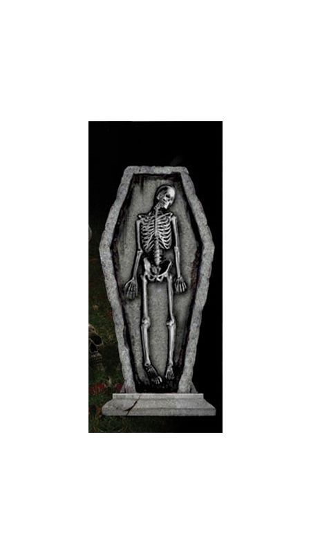 Готическое надгробие "Скелет в гробу" выполнено в серых оттенках. Эта статуэтка изображает скелета, который уже давно находится в гробу. Готическое надгробие "Скелет в гробу" - отличный аксессуар для Хэллоуина. Его можно поставить перед входом или во дворе. Все ваши гости придут в ужас, увидев такое.