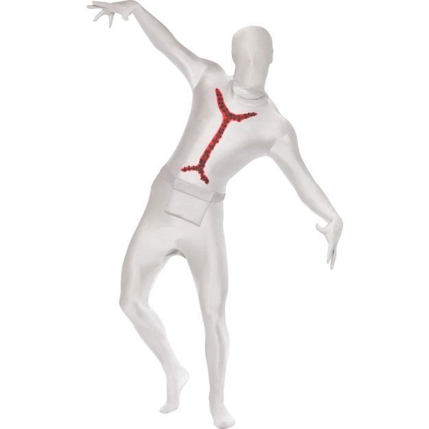 Костюм со шрамом вторая кожа - это серый костюм, который облегает и закрывает все тело и голову. На груди имеется имитация кровавого шрама.