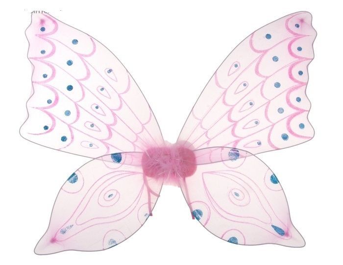 Крылья бабочки розовые с синими стразами станут прекрасным дополнением к костюму феи, а также в качестве самостоятельного аксессуара для карнавальных вечеринок или детских праздников. Размер крыльев 55х50 см.
