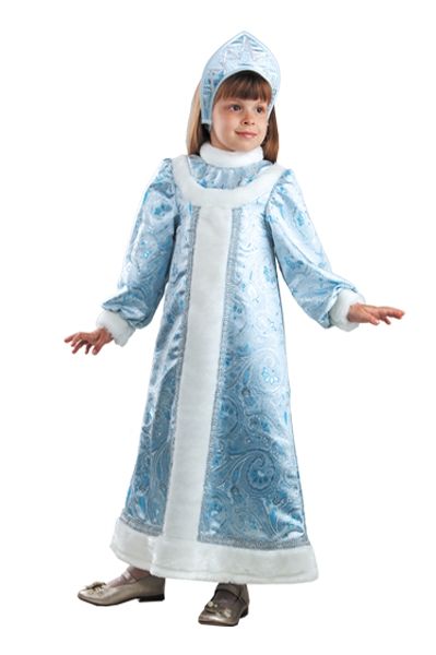 В комплект карнавального костюма маленькой Снегурочки входит платье и кокошник.