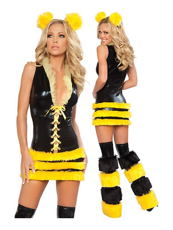 Супер красивый, оригинальный и стильный карнавальный костюм царицы пчел сделает вас самой изящной пчелкой на вечеринке. В костюм царицы пчел входит платье на завязках спереди, ушки пчелки и желто-черные накладки на ноги.