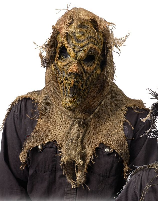 Маска - вурдалакообразное Пугало является прекрасным дополнением к большинству костюмов загробных персонажей. Маска выполнена в желтоватых оттенках, зашитый рот, сморщенный лоб, мешковатый платок - всё это составляет маску Пугала. В ней вы можете отправиться на вечеринку в честь Хэллоуина и на другие праздники и мероприятия.