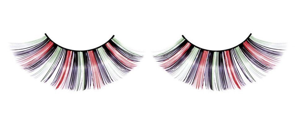 Очень привлекательные, оригинально оформленные ресницы сочетания черного, красного и салатового цветов.