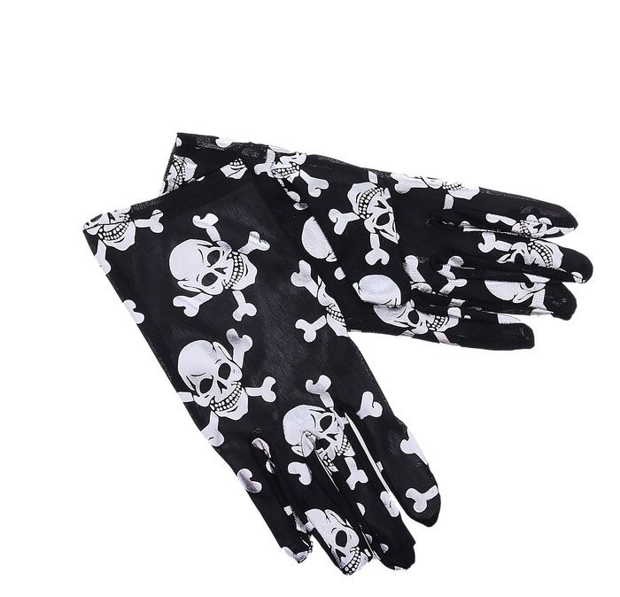 Перчатки с черепками выполнены в черном цвете и украшены черепками с костями серебряного цвета. Идеальный аксессуар для Хэллоуина.
