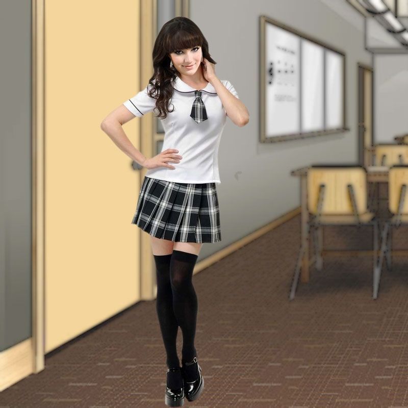 Костюм лучшей ученицы состоит из клетчатой юбки и футболки с галстуком. Комплект можно использовать для тематических вечеринок или ролевых игр со своим любимым.
