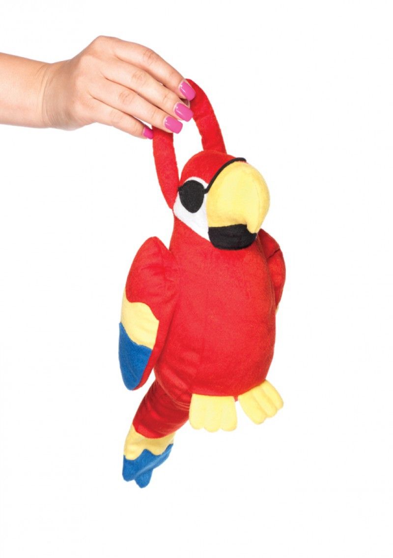 Сумочка Попугай выполнена из мягкого плюшевого материала в виде красного попугая с желтым клювом и черными глазками. Прекрасно дополнит женские пиратские костюмы.