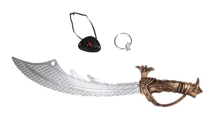 Набор отважного пирата включает в себя повязку на глаз, клипсу и оригинальный кинжал. Набор отважного пирата поможет дополнить образ морского разбойника и захватить вражеский корабль с сундуками золота. Размер набора 50х10х2 см.
