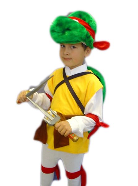 Детский костюм черепашки Рафаэль - костюм вспыльчивого черепашки Ниндзя. В комплект входит меховой зеленый панцирь, меховая маска-шапка, красные повязки на руки и ноги, желтая яркая безрукавка, а также коричневый пояс с буквой на бляшке.