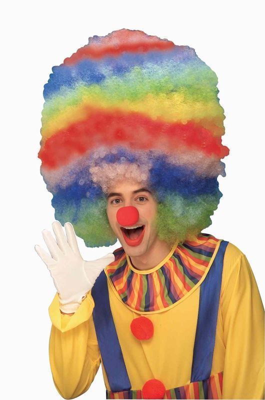 Мега-парик клоуна сделан из синтетических кудрявых волос, окрашен в разные яркие цвета. Подобрав другие подходящие аксессуары, вы превратитесь в настоящего весёлого клоуна.