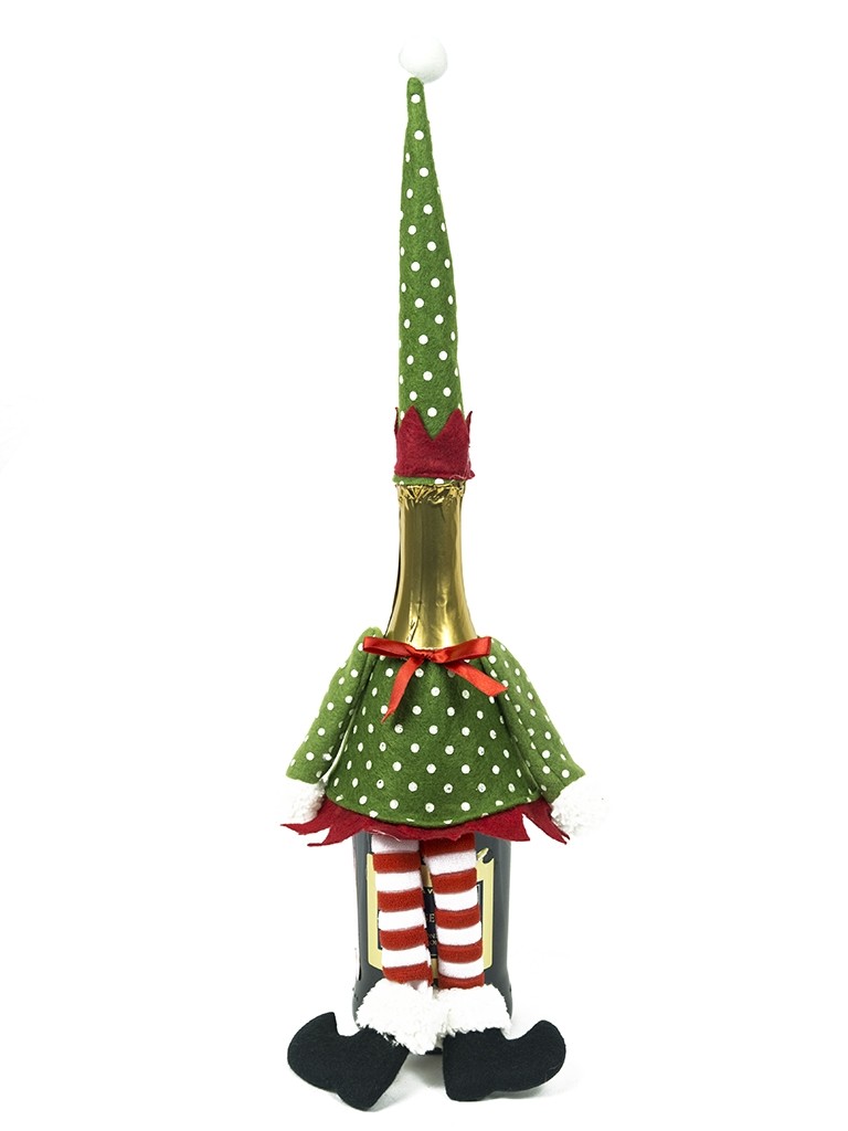 Наряд для бутылки новогодний - отличное дополнение Новогоднего стола. Наряд подходит для бутылок с шампанским и другим. В комплекте платье с пришитыми полосатыми ножками и высокий колпак.