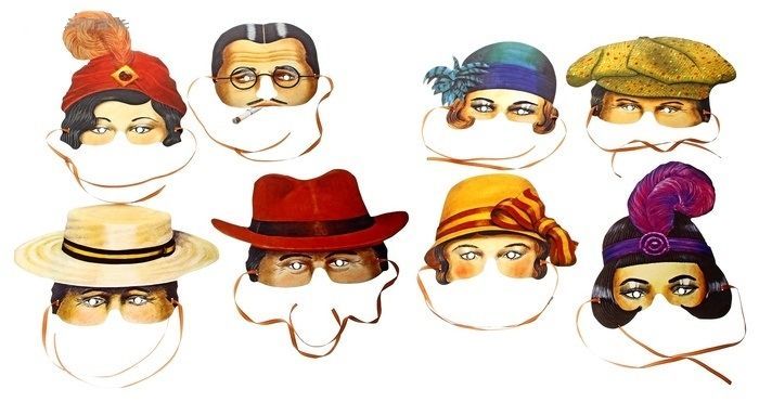 Набор масок начало 20-го века с изображением людей того времени, которые представляют собой жителей далекой Америки. Маски сделаны из бумаги. В набор входи 8 масок.