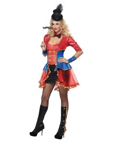 Костюм дивы цирка включает в себя платье с прикрепленной курткой, синие манжеты, воротник с бабочкой, мини-шляпу и усы на палке. В таком наряде ваши приказы будут слушать не только дрессированные животные, но и все сотрудники арены. Костюм станет прекрасным нарядом для веселой маскарадной вечеринки.