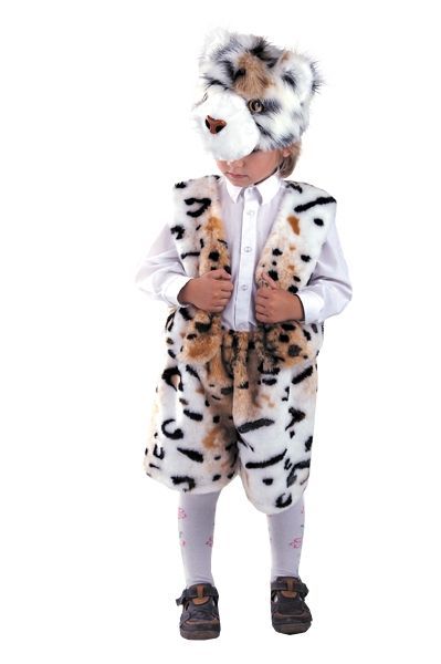 В костюм снежного барса входит штаники и жилетка из меха, маска снежного барса.