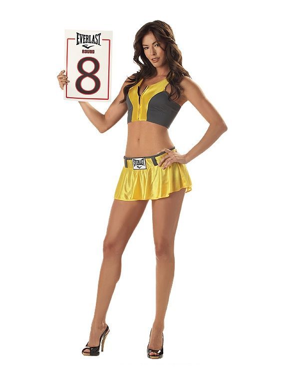 Жёлтый костюм девушки ринга выполнен в жёлтом цвете с тёмными вставками. В комплекте имеется топ, короткая юбка и шортики. Такой костюм подойдёт для ролевых игр, тематических вечеринок, похода на бокс и прочих мероприятий.