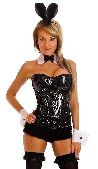 Великолепный костюм, с корсетом на шнуровке и на молнии сбоку, декорированным паетками в основе. Также в комплекте: воротник, манжеты и ушки.