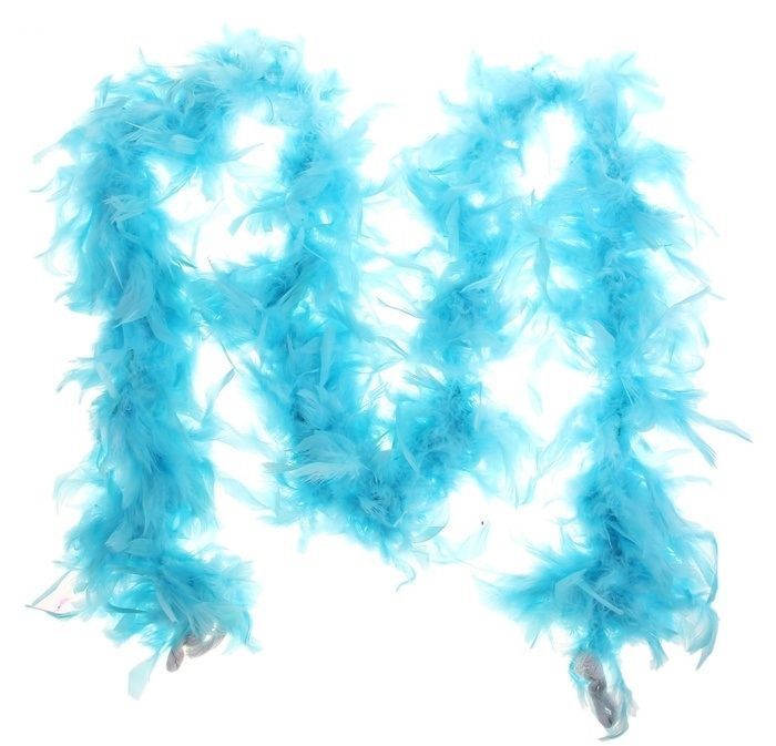 Карнавальное боа голубого цвета сделано из перьев, имеет длину 2 метра и весит 70 гр. Сделаете свой наряд праздничным и ярким при помощи этого голубого аксессуару.