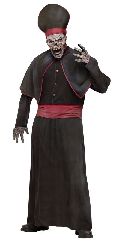 Костюм зомби первосвященника. В кого только может не превратиться злая сила в время Хэллоуина. В состав входят: халат, накидка, ремень, перчатки, маска, митра на голову.
