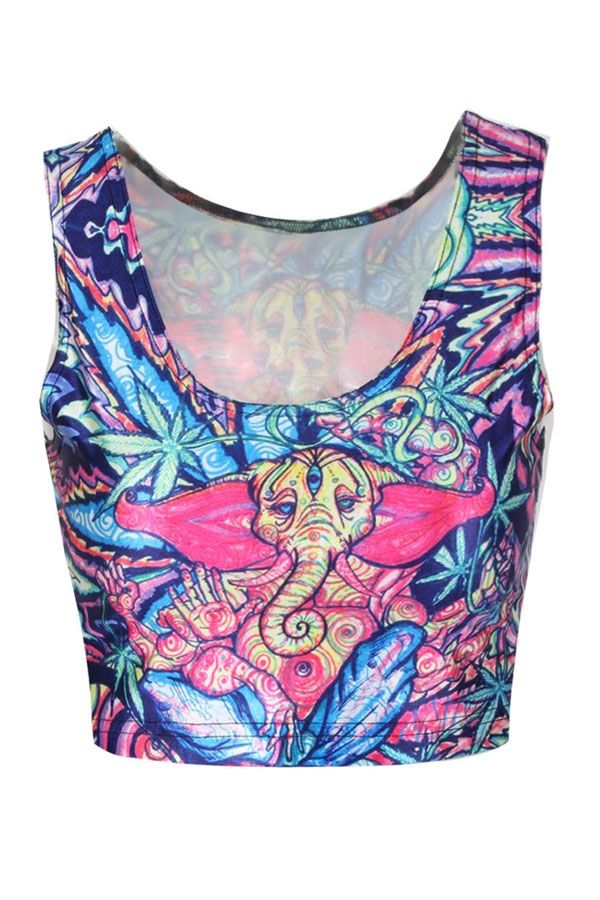 Яркий топ выполнен с принтом абстрактного рисунка слона в индийском стиле. Отлично подойдет ярким натурам, удачно дополнив коллекцию красивых вещей.