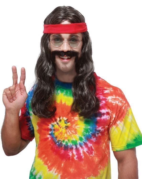 Чёрные усы и парик хиппи выполнены из синтетических волокон, окрашенных в чёрный цвет. Этот набор станет прекрасным дополнением для костюмов хиппи. Также вы можете подобрать различные аксессуары и прочие вещи.