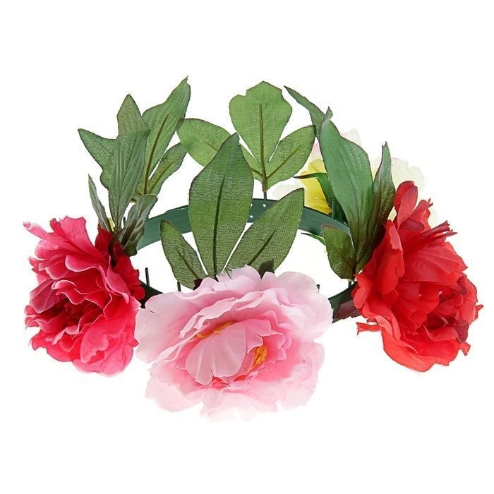 Ободок с крупными цветами пионов украсит вашу голову и прекрасно дополнит гавайские костюмы.