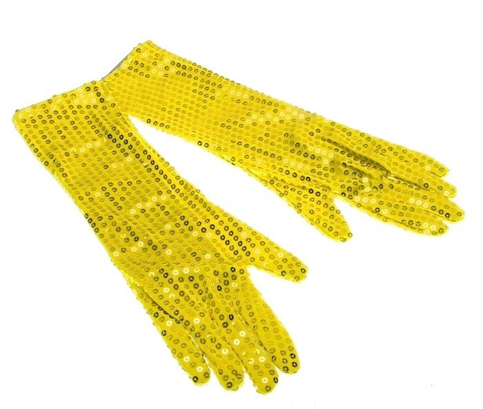 Желтые перчатки Бурлеск - перчатки в ретро-стиле, выполненные в желтом цвете и украшенные золотистыми блестящими пайетками. Перчатки смогут хорошо дополнить ретро костюмы девушек.