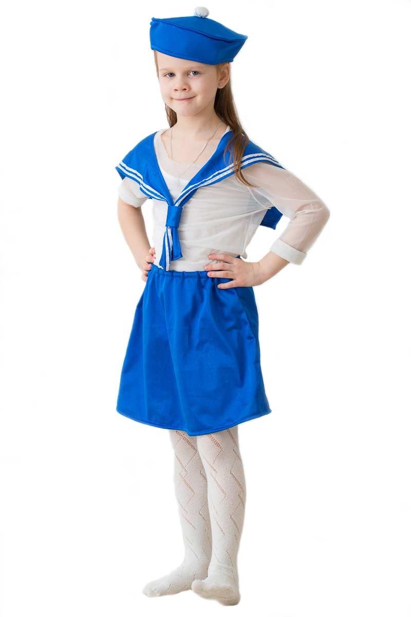 Детский костюм Морячки синий прекрасно подойдет для детских спектаклей и тематических праздников. Костюм включает в себя юбочку синего цвета, воротник с белыми полосками и синий берет.