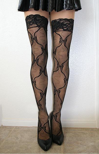 Великолепные черные чулки с нарисованными узелками отлично подчеркнут ваши ноги.
